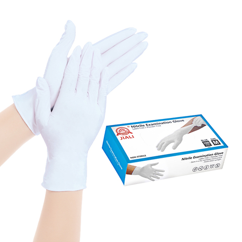 Хит продаж, Одноразовые Белые нитриловые перчатки, водостойкие беспорошковые защитные перчатки для ручного осмотра